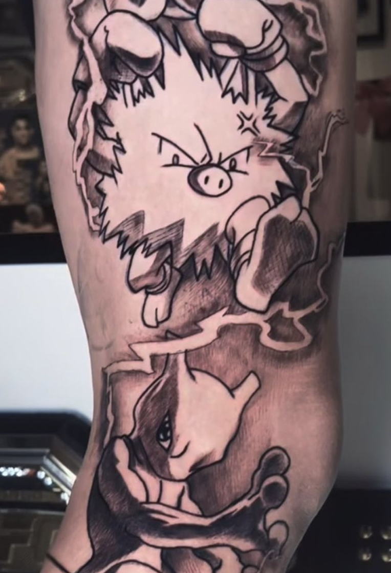 Sometimes fighters ahead of a big fight “shut down” and slip into a routine: gym — sleep — diet — silence. Charles Oliveira went a different way: he went and built himself a Pokédex right on his leg — a full Pokémon sleeve/lineup on his shin.