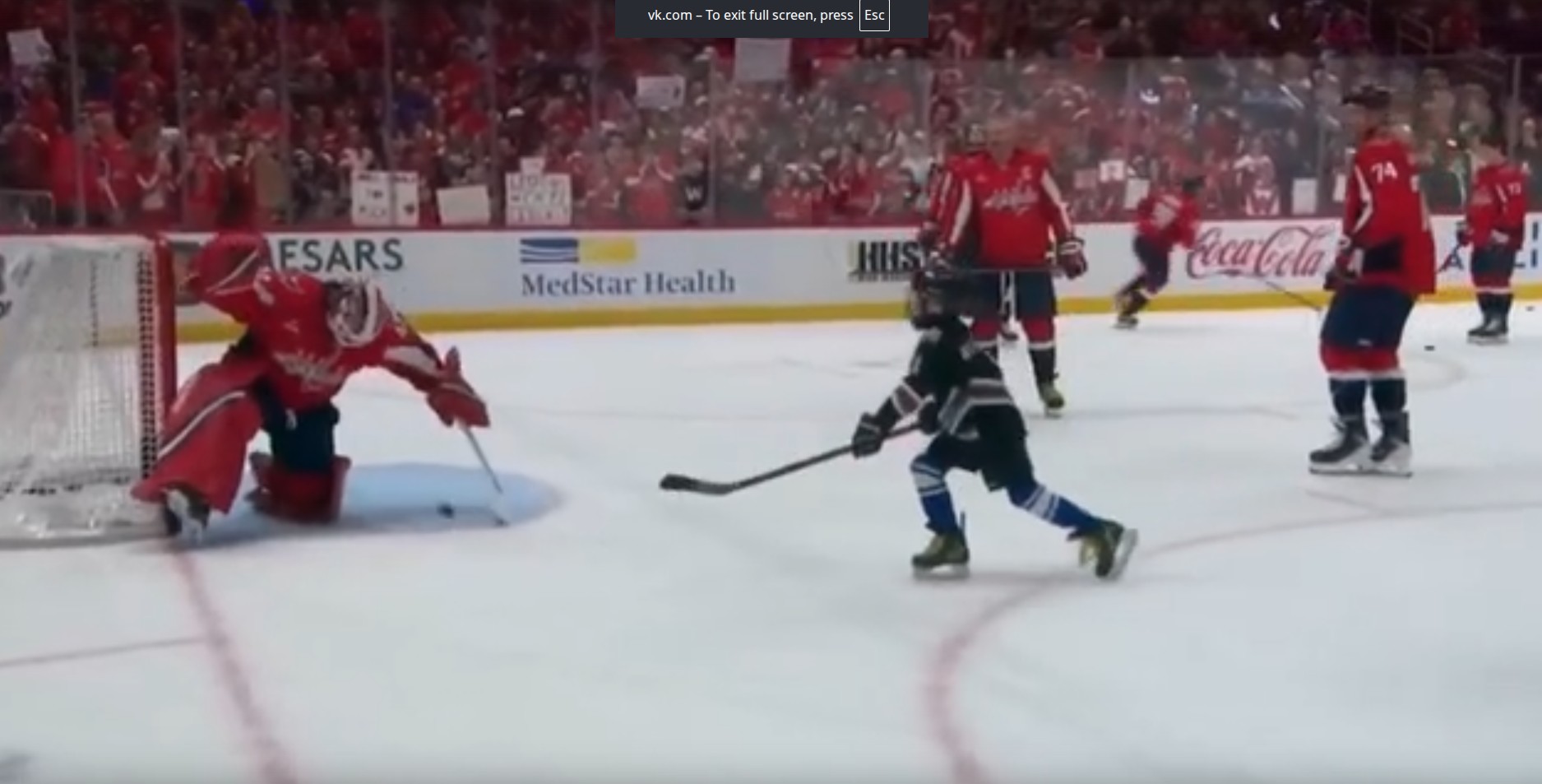 For warmups, Ovi stepped onto the ice together with his children — that moment instantly went viral on social media. The boys took a few shots on Logan Thompson, the Capitals goalie, looking like the little kids from the opening scenes of the legendary Soviet cartoon “Shaybu, shaybu!”, and they set a warm tone for the entire evening.