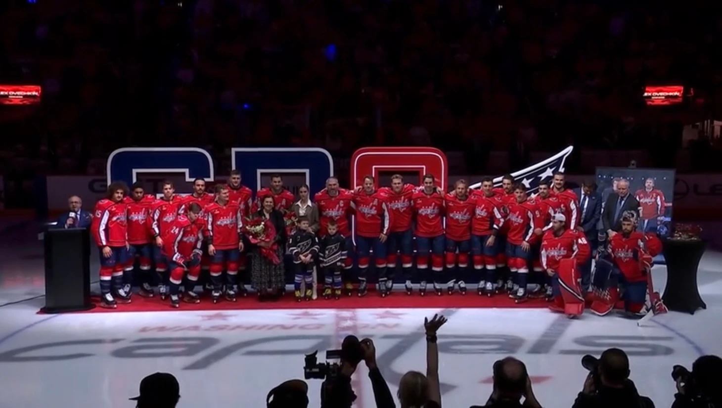 The ceremony resembled the one the club held after his regular-season goal record. Joe Beninati, the voice of the Capitals’ home broadcasts, once again served as the evening’s host, and flowers were presented to Ovechkin’s mother and his wife. A touching video was shown on the video board — his sons Sergei and Ilya personally congratulated their dad. It was obvious that this moved Alexander more than any round of applause.