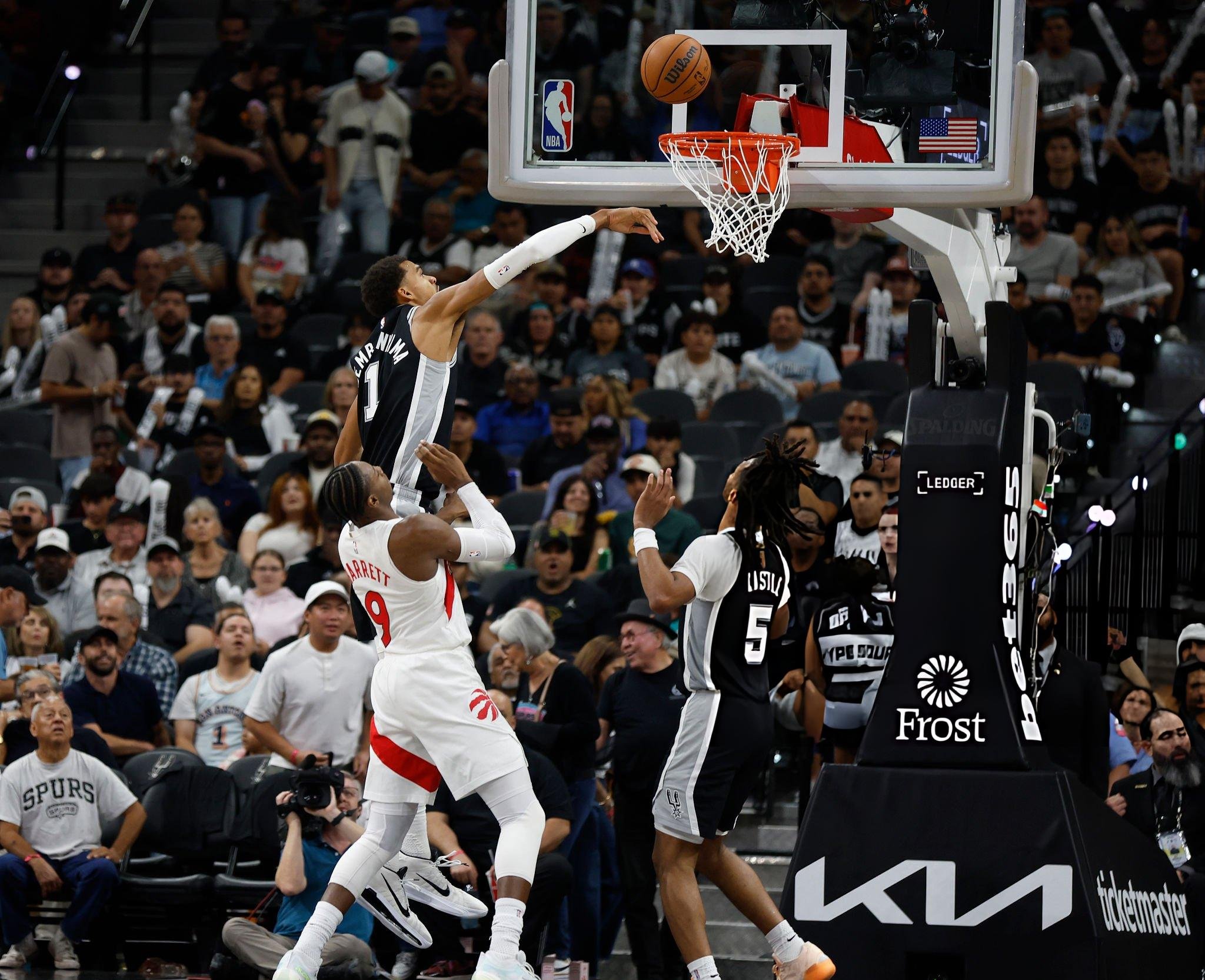 31 dakikada Wemby tertemiz bir double-double yaptı — 24 sayı ve 15 ribaund; saha içinden 8'de 7, serbest atış çizgisinden 10'da 10. Pastanın çileği: üst üste 89. maçta en az bir blok — takvimin adeta ayrı bir cazibe merkezine dönüşen seri. "San Antonio" "Toronto"yu 121:103 ile güvenle geçti ve akşam boyunca rakibe bir an bile geri dönüş umudu vermedi.