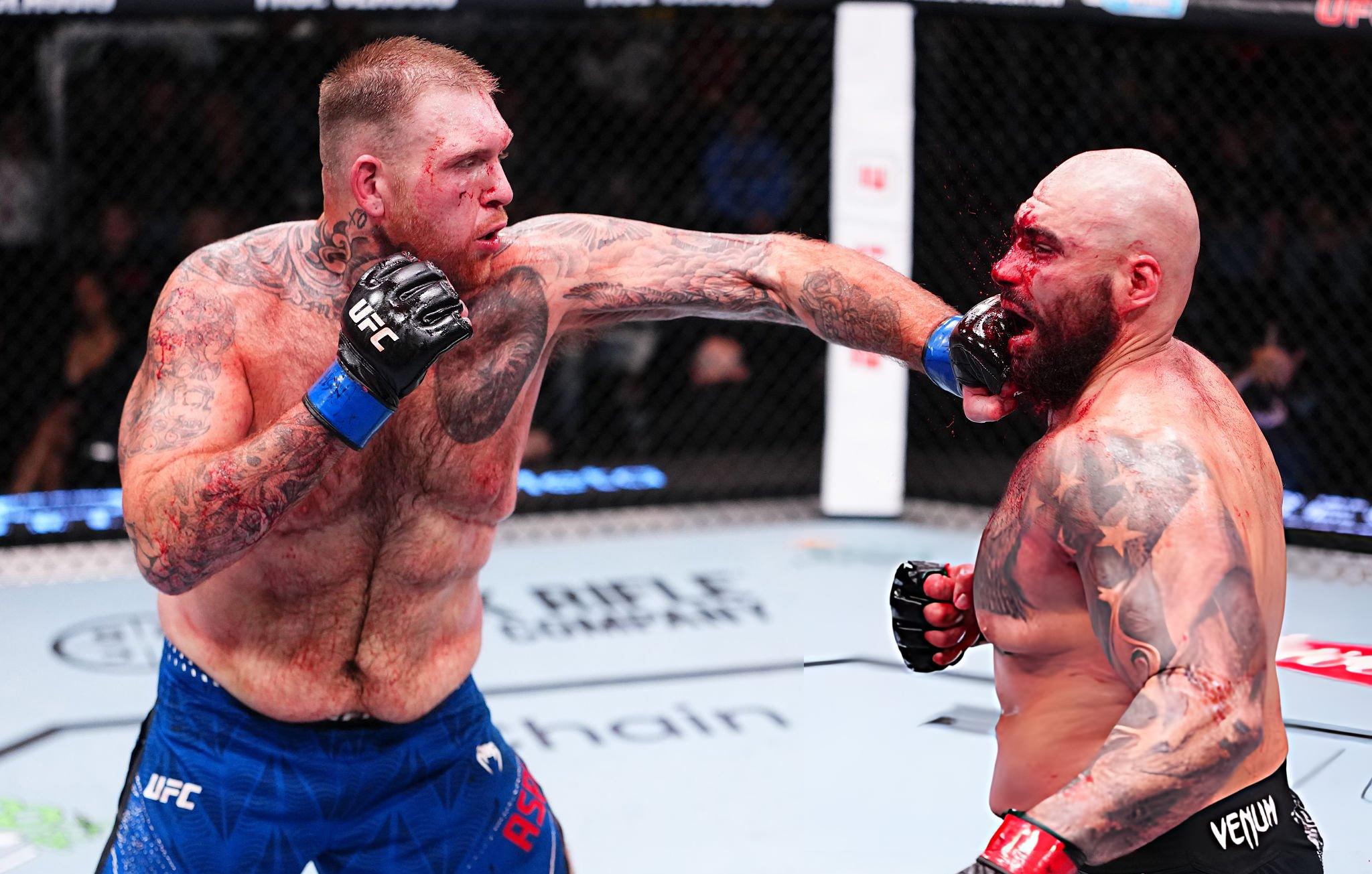 Özellikle ilginç olan karşıtlıktı: UFC’deki ilk maçında Asplund, Sean Sharaf’a karşı çıktı — tamamen farklı bir “kilo geçmişi” olan, bir zamanlar 77 kg kategorisine sığabilecek bir dövüşçü. Steven ise yıllardır ağır siklet olduğunu, bedeninin büyük kütleye göre ayarlandığını vurguluyordu: “Ağır sıkletim. Motorum büyük kütle için tasarlandı” der gibiydi.