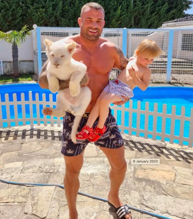 Onun imajının en çok konuşulan kısmı — özel hayvanat bahçesi. Lüks malikânede Vemola dişi aslanlar, köpekbalıkları, timsahlar ve hatta bir kanguru besliyor. Yırtıcıları bizzat besliyor, kafeslere sanki rutinmiş gibi giriyor. Bir keresinde, anlattığına göre, bir domuz aslanın kafesine daldığında onu pençelerinden çekip alarak komşu bölmeye yönlendirdi ve hayvanı kucağında dışarı taşıdı — sahneyi ailesi pencereden izliyordu. Her şey 2012’de Afrika’daki safariyle başladı: yaralı bir aslan yavrusunu görüp eve getirdi, sonra ona bir “eş” aldı. Daha sonra beyaz bir Bengal kaplanı bile oldu — fikri, Mike Tyson’ın kaplanla yürüdüğü görüntüler tetikledi. Evrak eksikliği nedeniyle kaplan Almanya’ya götürüldü ama hayvanat bahçesi işlemeye devam etti. Bir dönem ziyaretçilere kapılarını açtı, bilet 400 avroydu — skandallar büyüdükçe büyüdü.