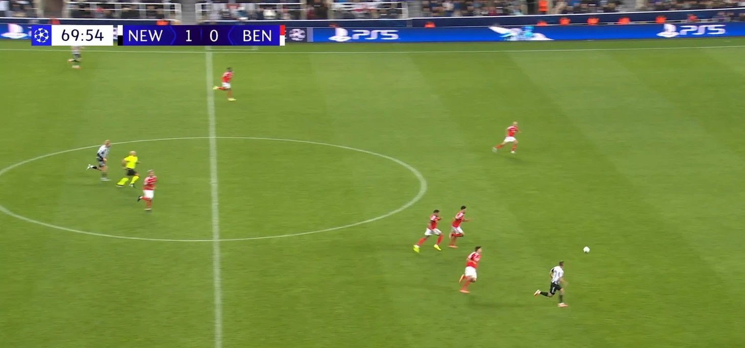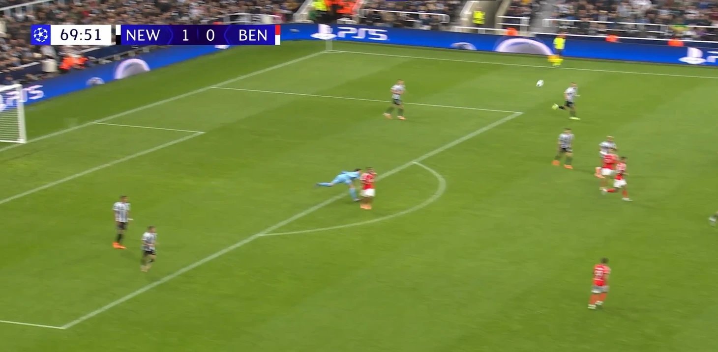 Elden verilen gol pası, takım buna hazırsa tek seferlik bir numara değildir. Eddie Howe'un "Newcastle"ı dikey geçişleri aktif biçimde kullanıyor; hızlı kanatlar ve iç oyuncuların varlığı, kalecinin uzun fırlatışını yüksek presse karşı bir silaha çeviriyor. Rakip sizi ceza sahasına kapattığında, topu bir anda savunma arkasındaki boşluğa aktarmak en iyi pres-kırıcıya dönüşür. Tam da öyle oldu: Pope'un tek kararlı aksiyonu "Benfica"nın yapısını "parçaladı", Barnes da fikri sonuca çevirdi.