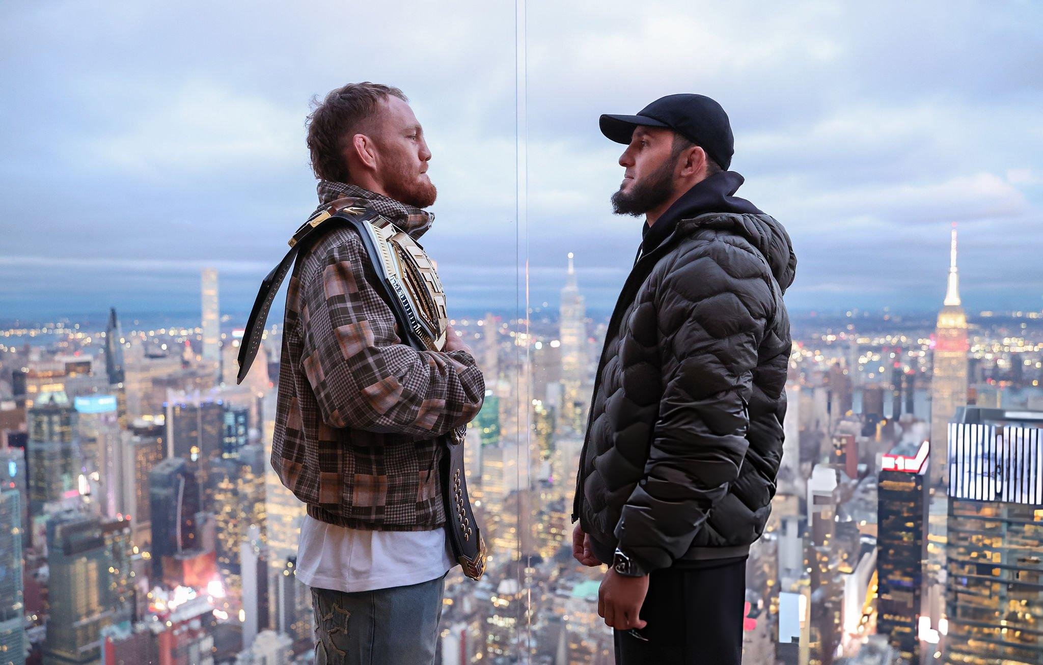 İlk staredown kapalı bir basın salonunda değil, New York gökdeleninin çatısında yapıldı — Manhattan manzarası, rüzgâr ve iki şampiyon yüz yüze. Taraftarlar İslam'ın dönüşümünü anında fark etti: hacim olarak büyümüş, daha sıkı ve “yarı orta sıklete yakışır” şekilde toparlanmış görünüyor. Sıklet değişimi sadece teknik ve oyun planı değil, doğru kazanılmış kütle demek.