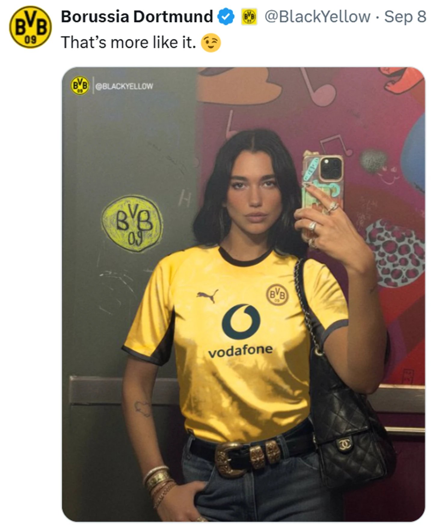 Tek bir ayna selfiesi — ve internet kolajlarla doldu: Dua Lipa’yı dünyanın dört bir yanındaki kulüplere "transfer edip" üzerine Güney Amerika devlerinden Avrupa’nın elitlerine kadar forma "giydirmeye" başladılar. Fan art’lar bir anda çoğaldı — el işçiliği retuşlardan güven veren yapay zekâ düzenlemelerine kadar; öyle ikna edici görseller var ki resmî çekim sanmak kolay.