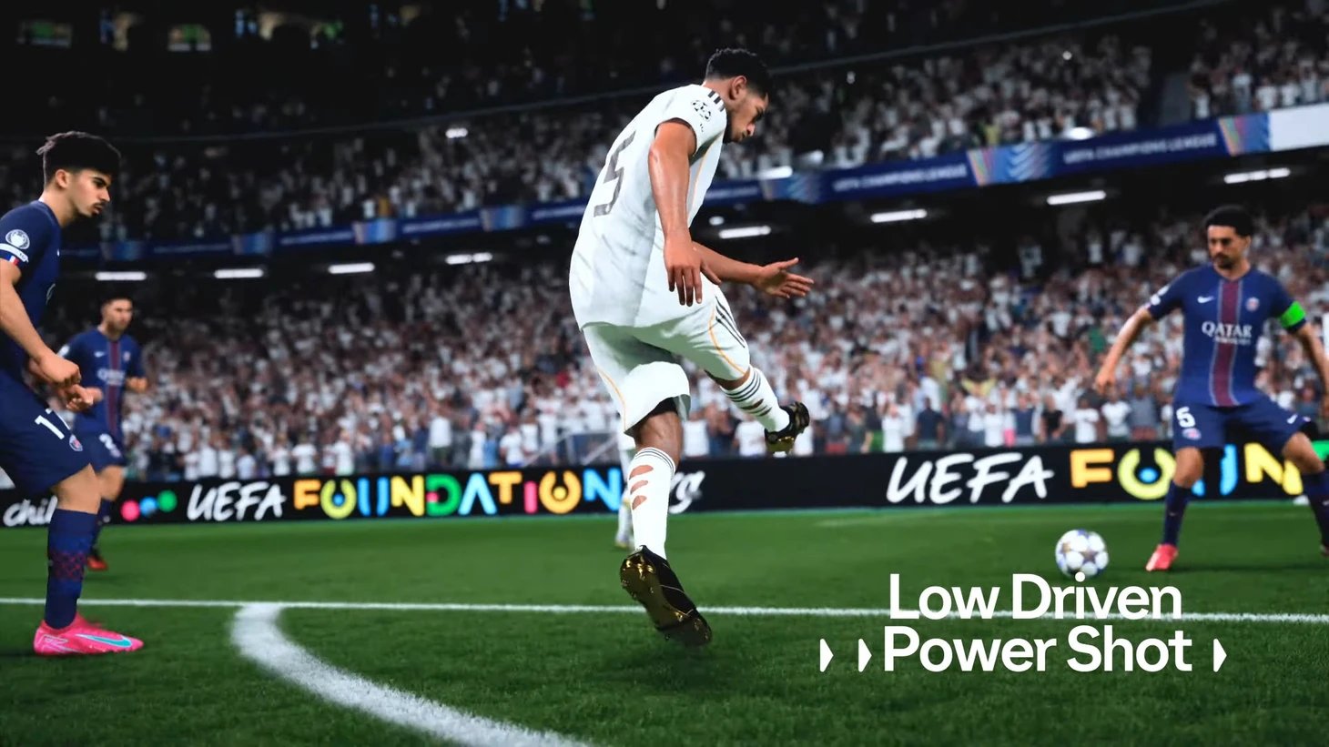 Geliştiriciler yerden şutları yeni bir seviyeye çıkardı – artık bu tek bir bitiriş hareketi değil, yedi durumsal seçeneğin tam paketi. Uzak köşeye kaşık vuruşundan çizgi boyunca falsoya kadar her şut jesti, gövde konumuna ve pas rotasına bağlı. Klasik Timed Finishing tarihe karıştı: tek tuş yerine oyuncu pozisyonu sezgisel olarak okuyor.
