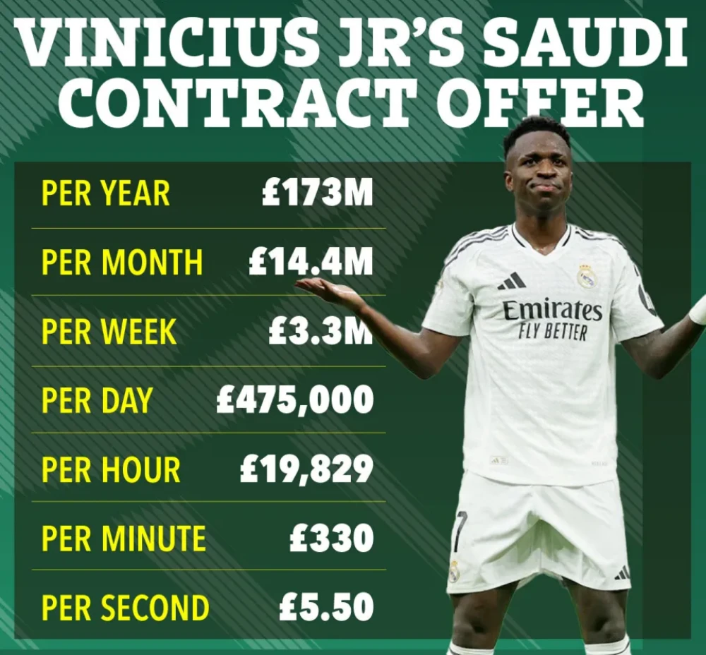 Bahisçilere göre Vinícius’un bir sonraki en olası durağı Suudi Arabistan. Avrupa seçenekleri içinde Manchester City ve PSG dikkat çekiyor. İşte oranlarıyla birlikte olası kulüpler listesi: