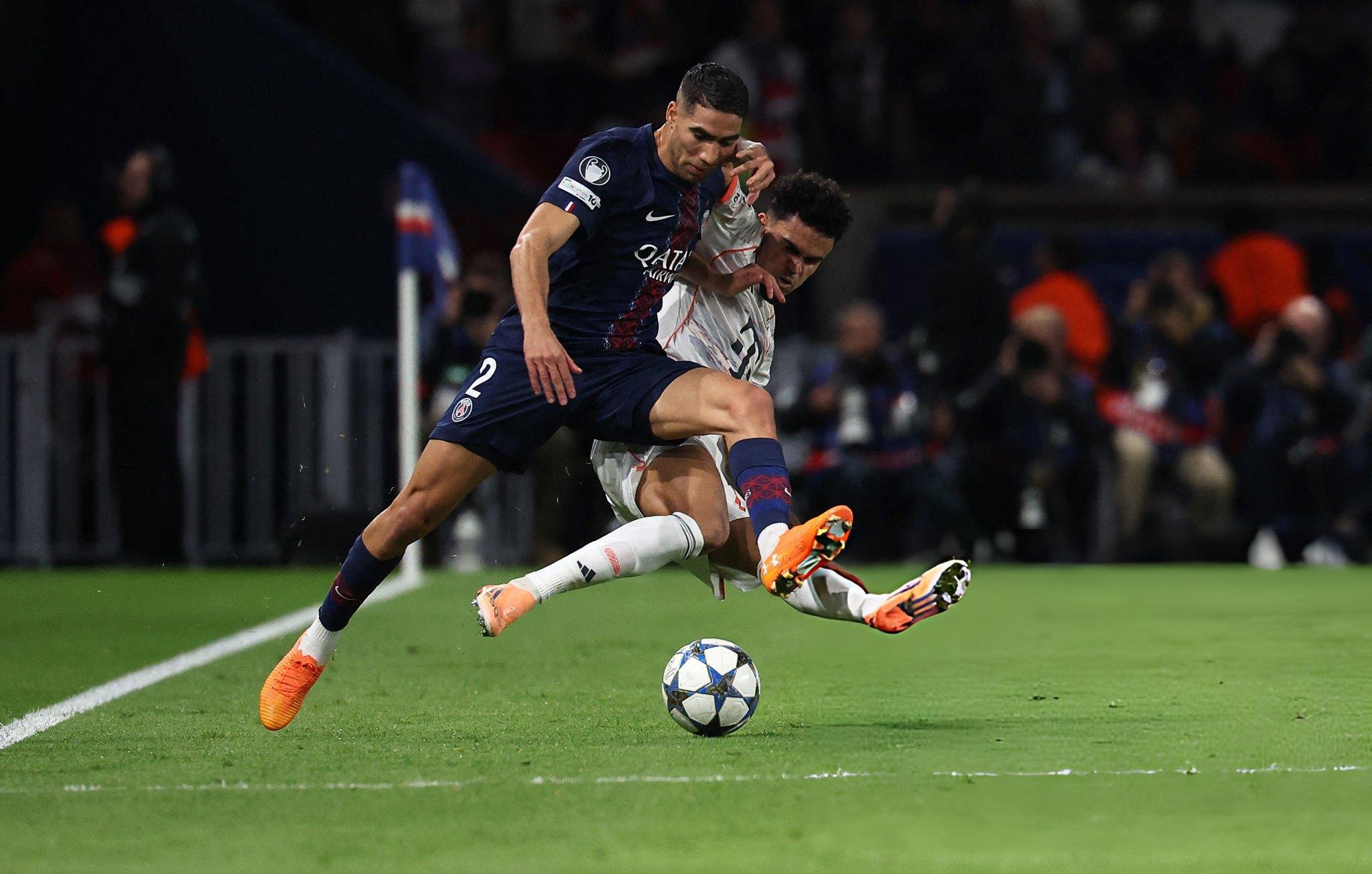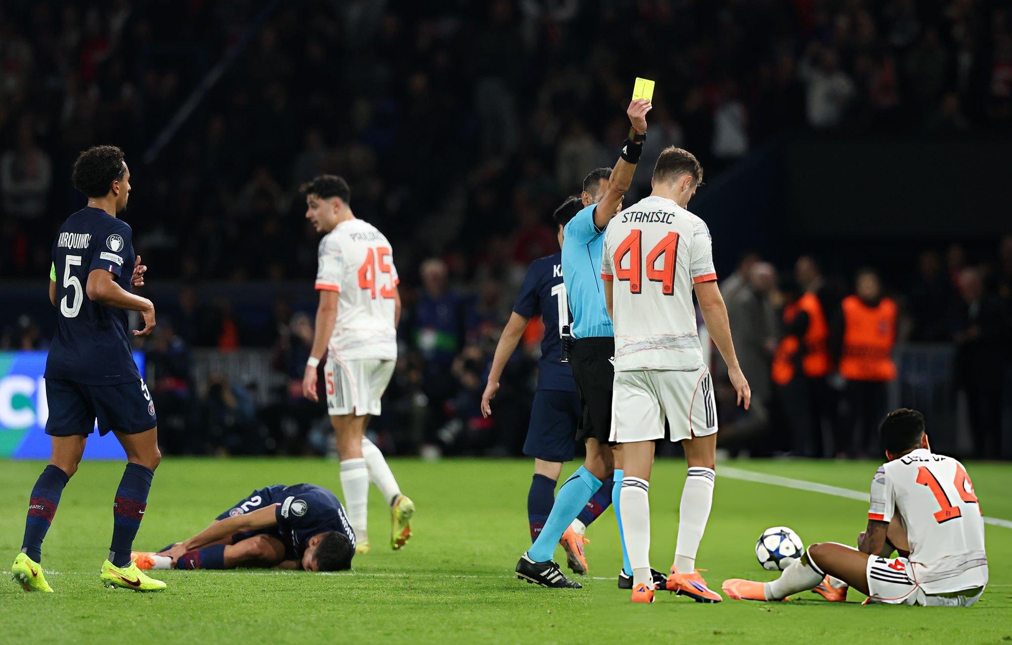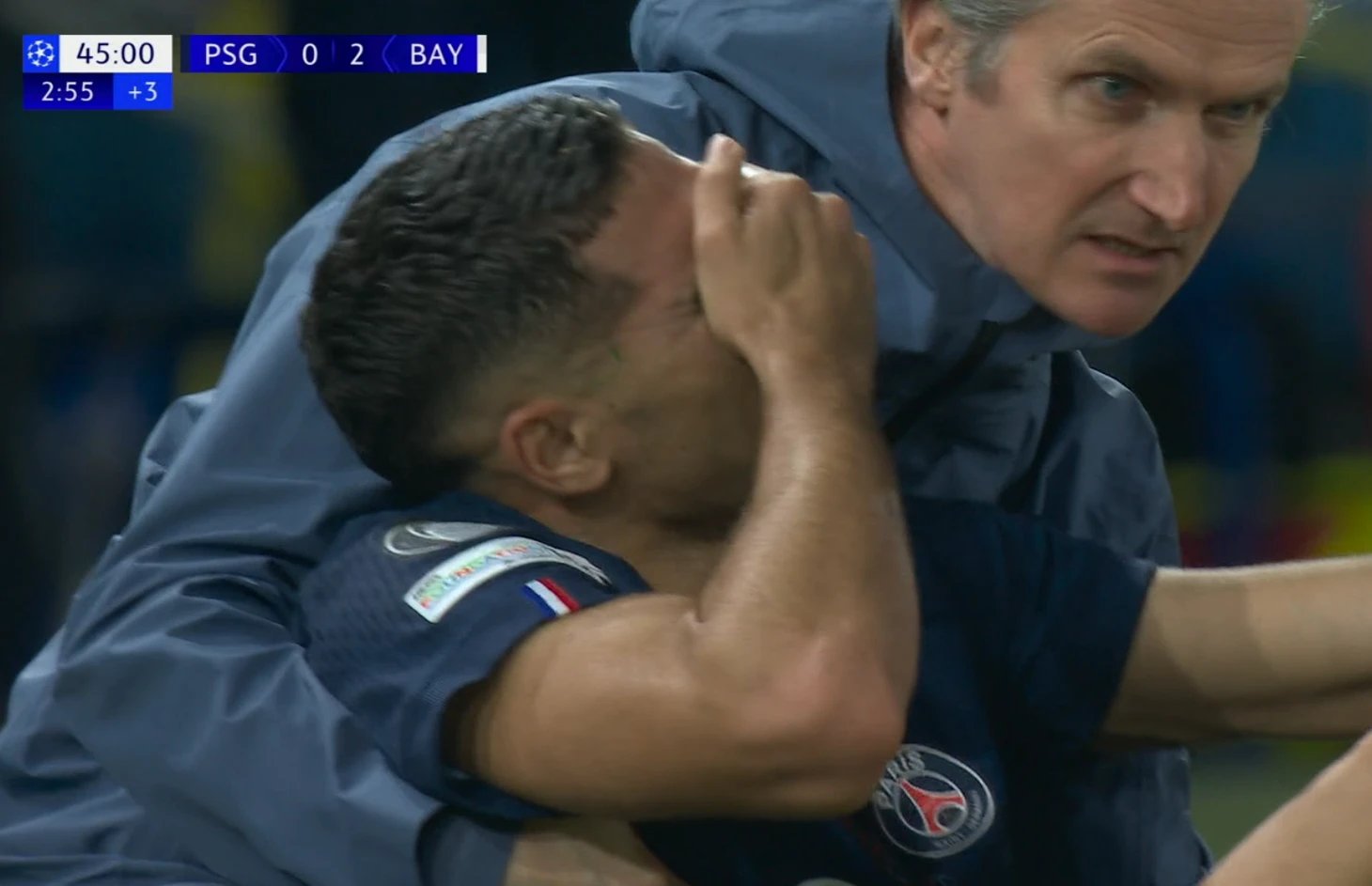 Yayın tekrarları acımasızdı. Atlayışın kendisi fazlasıyla agresifti ve Hakimi'nin ayak bileği rakibin bacakları arasında adeta "makas" oldu. Hakem hemen monitöre çağrıldı ve kartın ağırlığı doğal olarak kırmızıya yükseldi. “PSG”nin doktorları hasarlı bilekle ilgilenirken Faslı oyuncunun yüzünde gözyaşları parlıyordu. Devam etmesi imkânsızdı; değişiklik anında geldi.