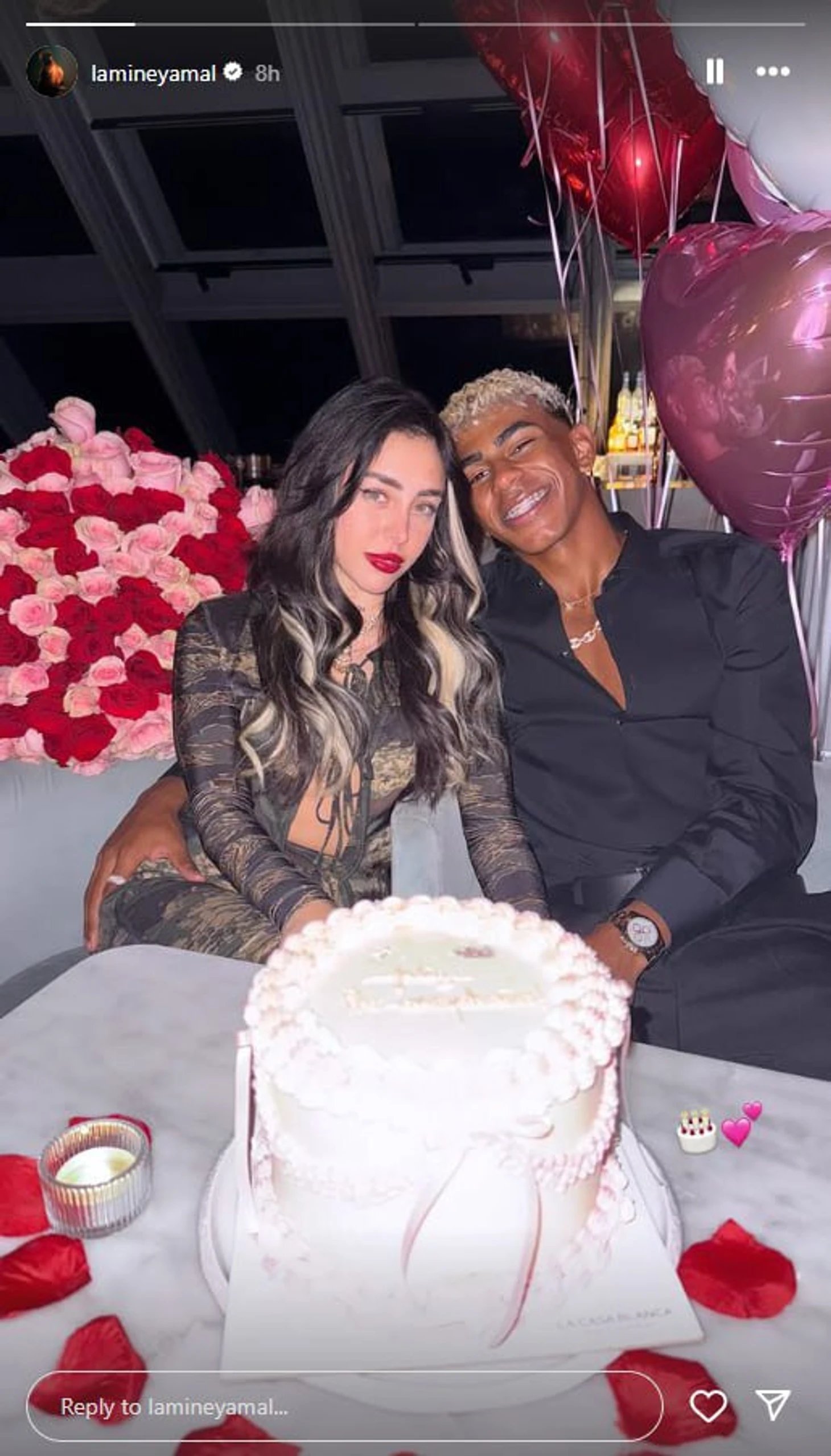 Barcelona'nın 18 yaşındaki kanat oyuncusu Lamine Yamal magazin gündeminin merkezine yerleşti: Arjantinli şarkıcı Nicki Nicole'un doğum gününde Instagram hikayesinde birlikte çekilmiş bir kare paylaştı — fotoğrafta doğum günü pastası, balonlar ve çiçekler görünüyor; açıklamada ise pasta emojisi ve iki kalp var. Bu kadarı, taraftarlar ve magazin basını için olası bir ilişki üzerine söylentilerin yeniden alevlenmesi adına yeterli oldu.