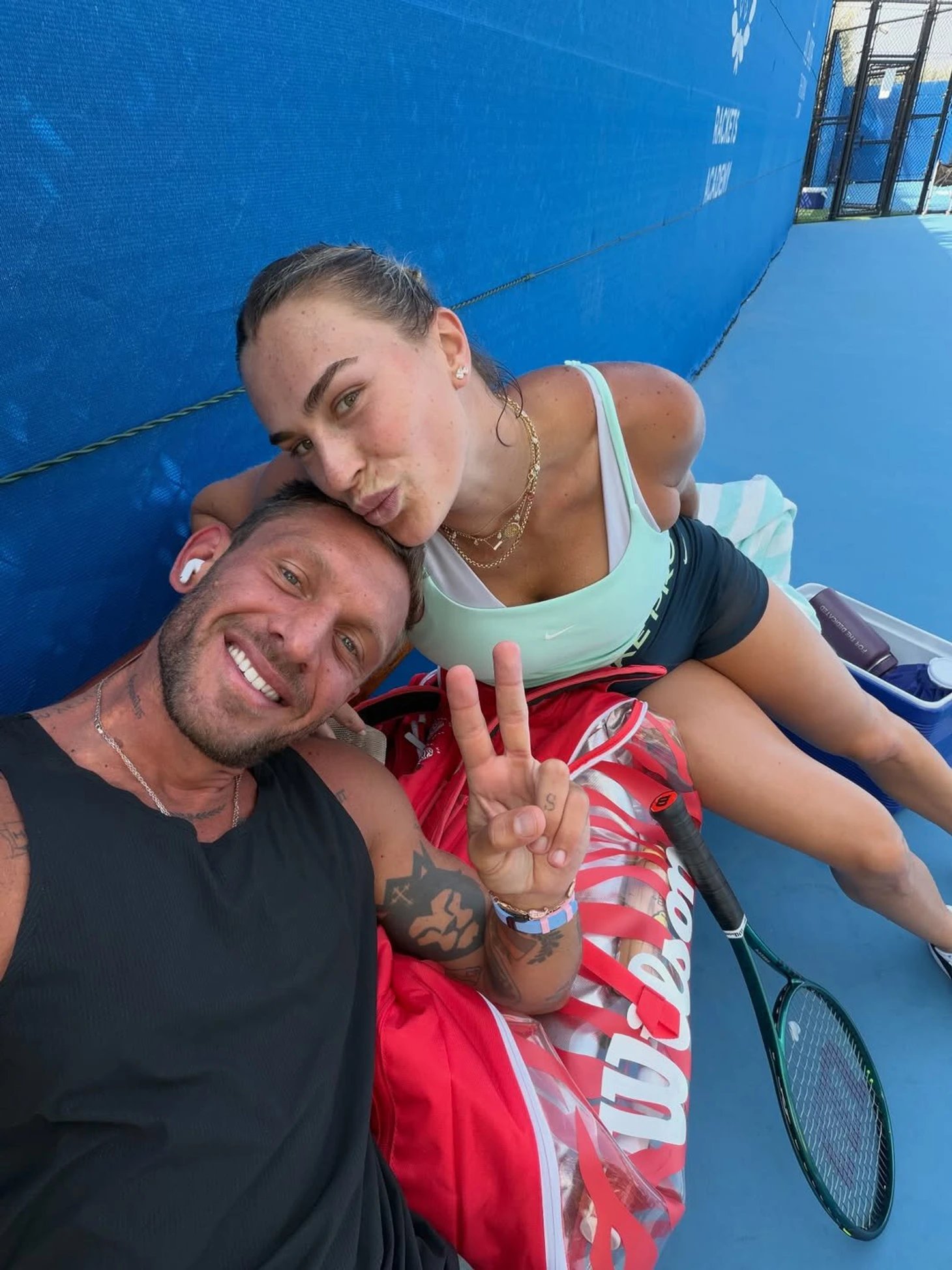 Yunanistan dönemine ekstra bir bonus eklendi — ülkede yerleşik olan Novak Djokovic ile ortak antrenmanlar. File üstündeki kısa konuşmalar, dünya 1 numarasının temposunda ralliler — return kalitesini ve ikinci serviste dayanıklılığı test etmenin daha iyi yolu zor bulunur. Akşamları ise daha sakin bir ritim: Arina ile Frangoulis'in Djokovic çifti, Jelena ve Novak'la “çifte buluşma”sı.