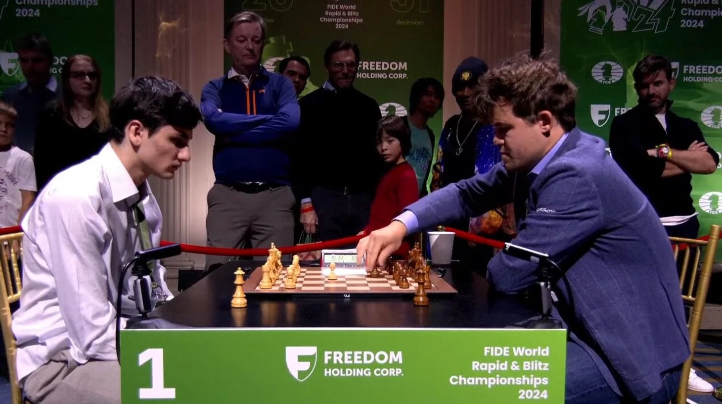 Magnus üstünü değiştirmeyi reddetti, talebi aşırı buldu ve hızlı satranç mücadelesinden, on üç turun yalnızca sekizine kadar oynadıktan sonra çekildi. Ayrılışının nedeni, performansı düzensiz olsa da, oyunun kalitesinden çok kıyafet konusundaki ilkesel duruşuyla bağlantılıydı.