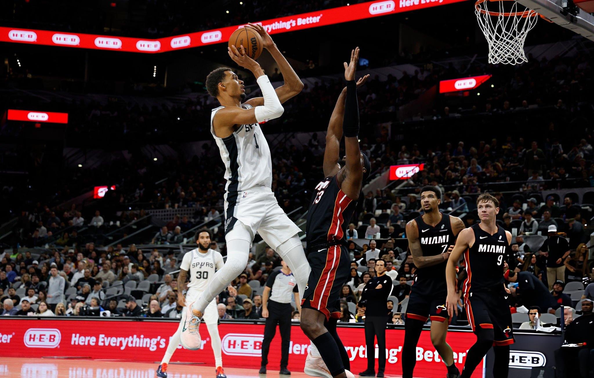 “Miami” ile “San Antonio” maçı öncesinde Victor Wembanyama'nın olağanüstü boyu yeniden gündemdeydi. Bam Adebayo'ya, aşağıdan yukarı bakmak zorunda kaldığı birine karşı oynamanın nasıl olduğu soruldu. Heat'in pivotu sakince şunu vurguladı: NBA'de aşırı uzun oyuncular egzotik değil, işin günlük gerçeği. Ve bunu maçta gözle görülür biçimde kanıtladı: 206 cm'lik Adebayo boyalı alanı yarıp geçti ve 224 cm'lik Wembanyama'nın üzerinden güçlü bir smaçla bitirdi.