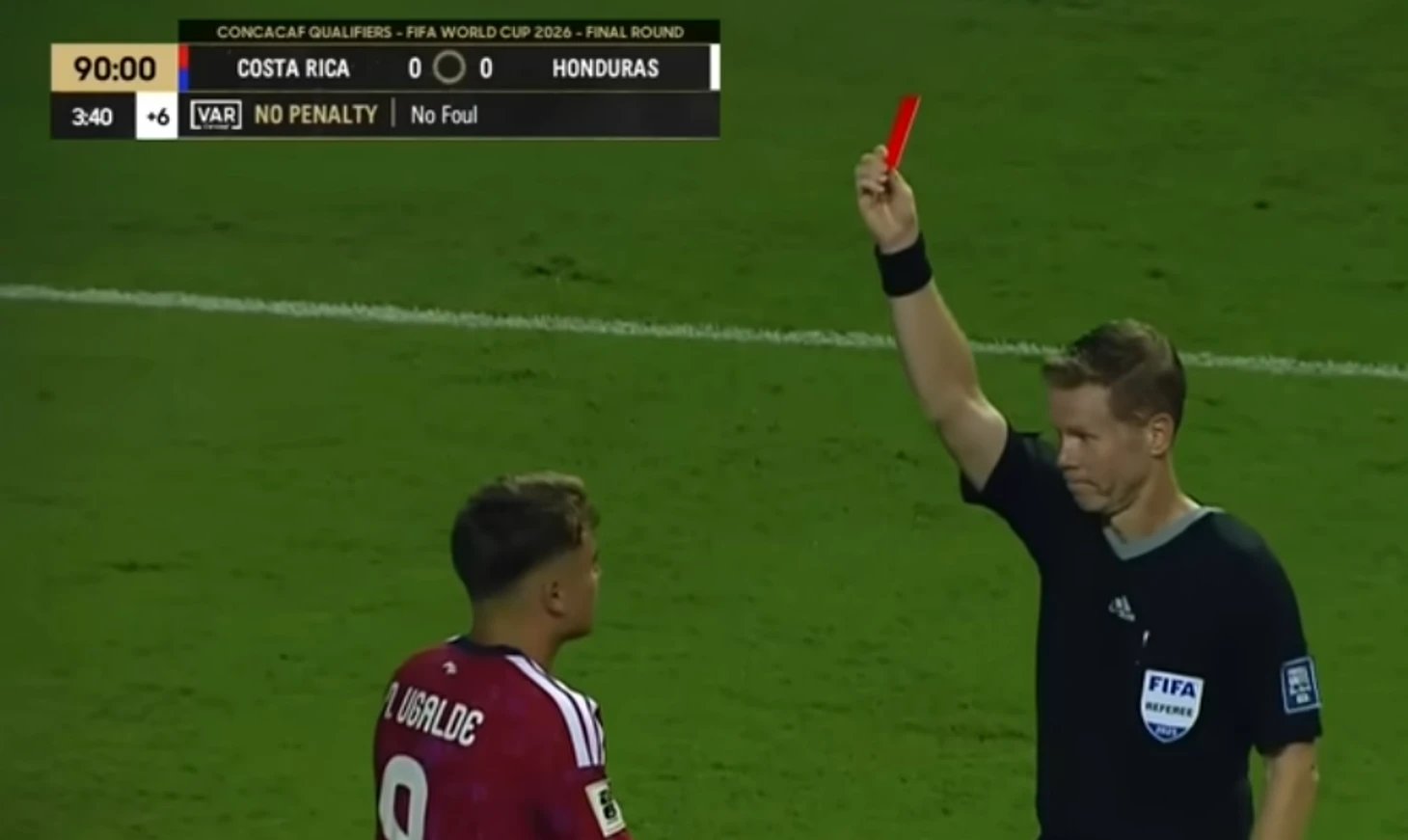 İtirazlar dinmedi, tansiyon iyice yükseldi: hakeme yönelik itirazları nedeniyle Manfred Ugalde oyundan atıldı. Buna rağmen Kosta Rika, eksik kalmasına karşın rakibini sıkıştırsa da skoru kıramadı – son düdükte skor tabelası 0:0'ı gösteriyordu. Honduras için bu sonuç, play-off'taki yerini fiilen koruyan bir beraberlikti. Neredeyse.
