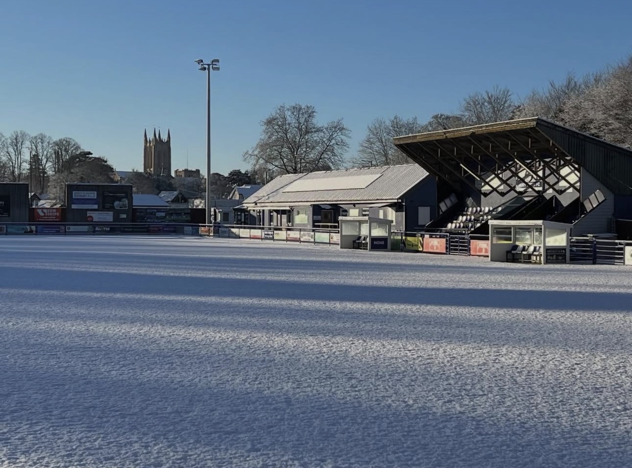 Снег в Англии случился (редко, но метко), нон-лига превратилась в открытку: где-то отменили матчи, где-то снимали зимнюю красоту дронами, где-то показали трибуну-динозавра из 1892-го, а где-то честно написали на поле “матча не будет”. И при всём этом настоящая магия — не в снеговиках и не в фото, а в волонтёрах, которые вытаскивают клубы из зимы руками, лопатами и упрямством.