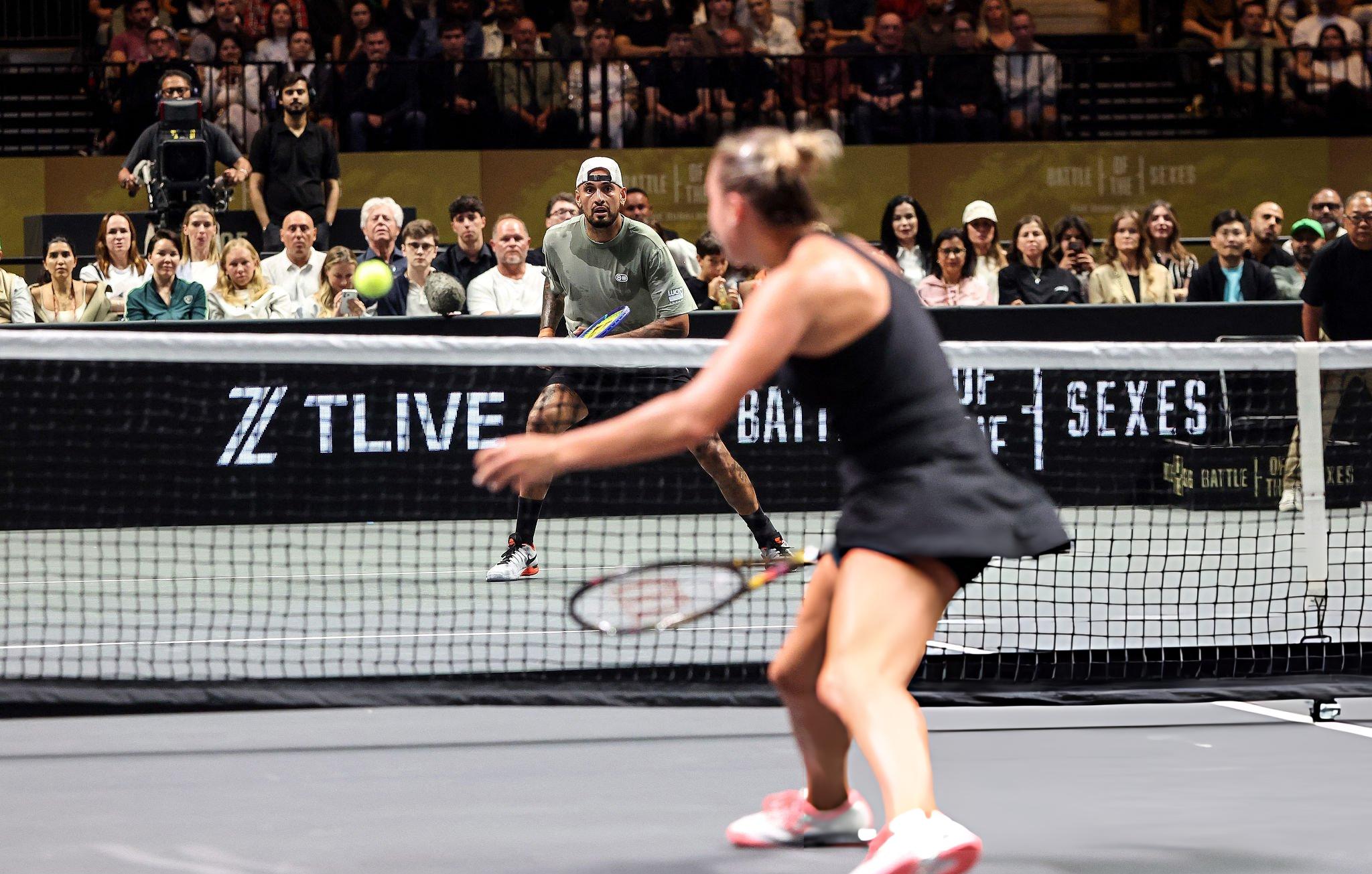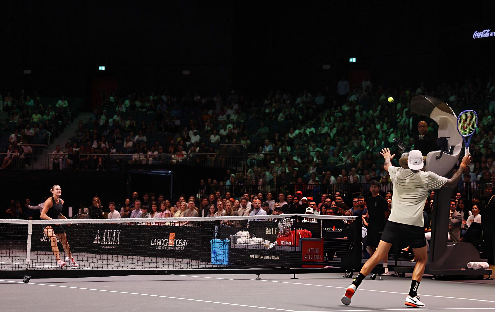 Если сравнивать с легендарной историей 1973 года (Билли Джин Кинг vs Бобби Риггс), то нынешняя «Битва полов» — это не идеологическая дуэль, а развлекательное мероприятие. Причём развлекали нас не только выходом Арины под Eye of the Tiger в блестящем плаще (да, это было эпично), но и тем, что происходило в розыгрышах.