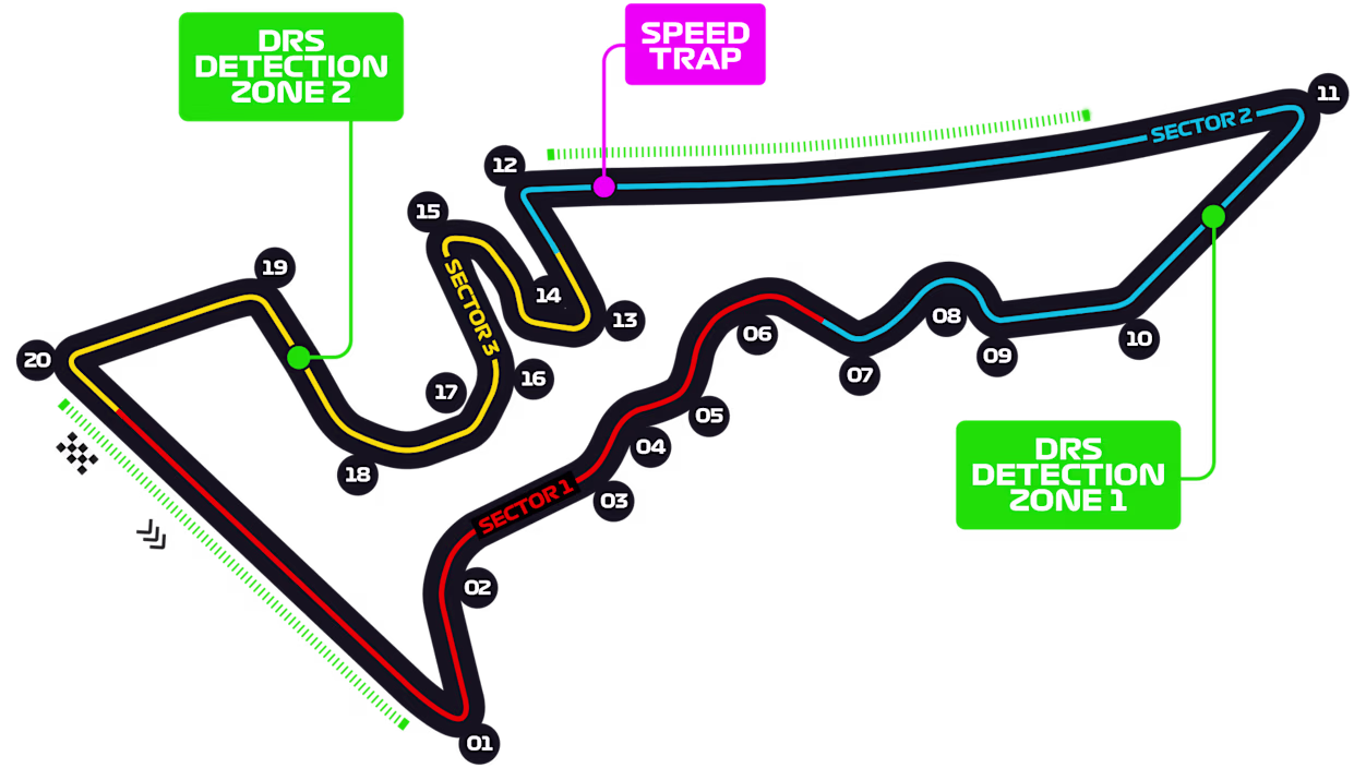 Balans farqlari, tor yoylar, «sof aerodinamika» kam, pilot mahorati ko'p — bunday dekorlarda Verstappen ko'pincha maksimumni oladi. «McLaren»lar asosiy raqiblar: ular oz mashg'ulot bilan ishga tushadigan universallikka ega; «Ferrari» va «Mercedes» uchun esa ayniqsa 2-sektorda trassa har doim ham kerakli tempni bermaydi.