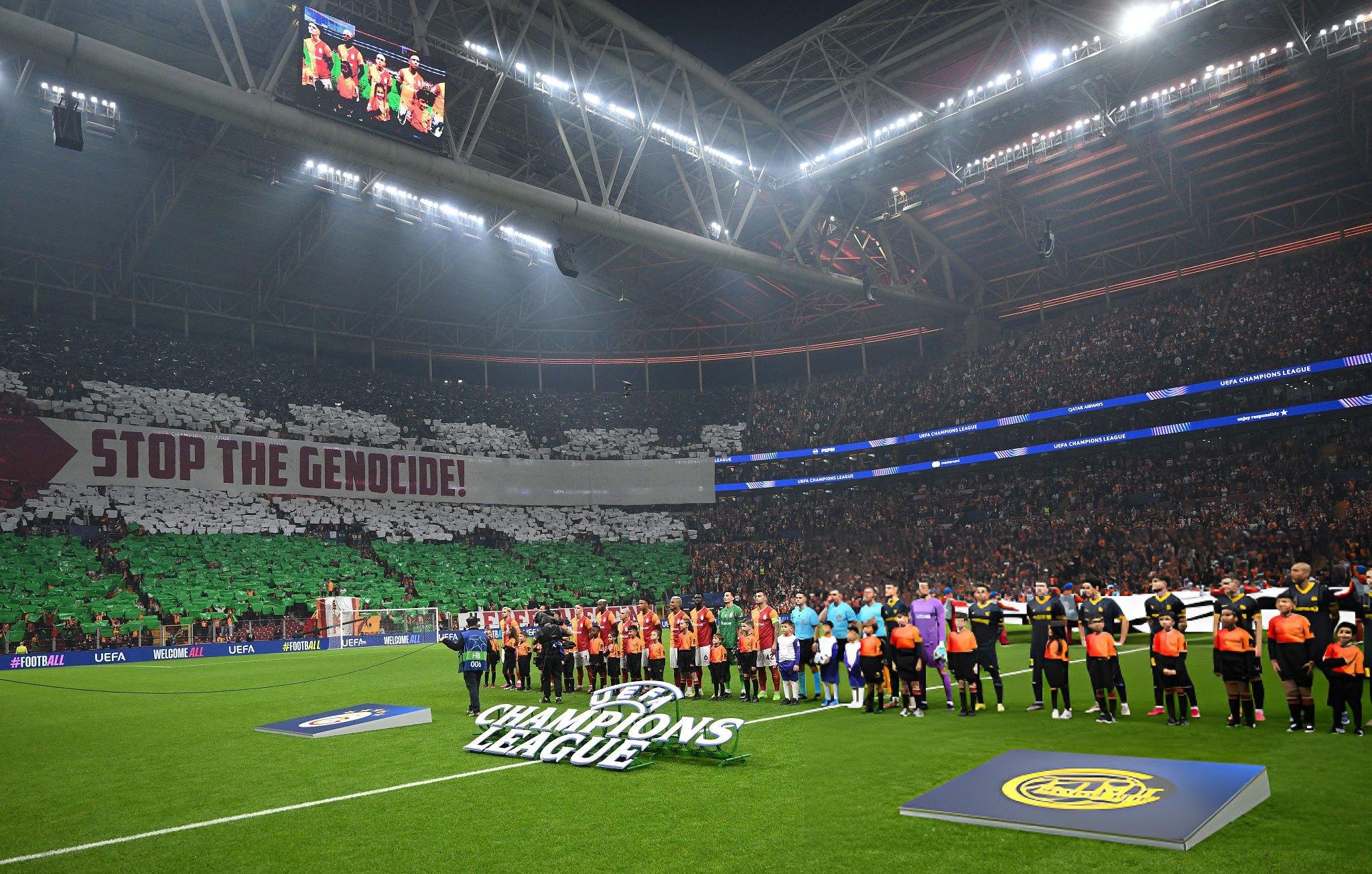 Champions League'dagi uy uchrashuvida Galatasaray Bodø/Glimt ustidan 3:1 hisobida g‘alaba qozondi. Biroq xotirada qolgan narsa nafaqat sifatli futbol edi: start hushtagi oldidan janubiy tribuna ulkan jonli plakatga aylandi — ultras guruhlari Palestine'ga hamdardlik sifatida minglab kartonlardan bayr...